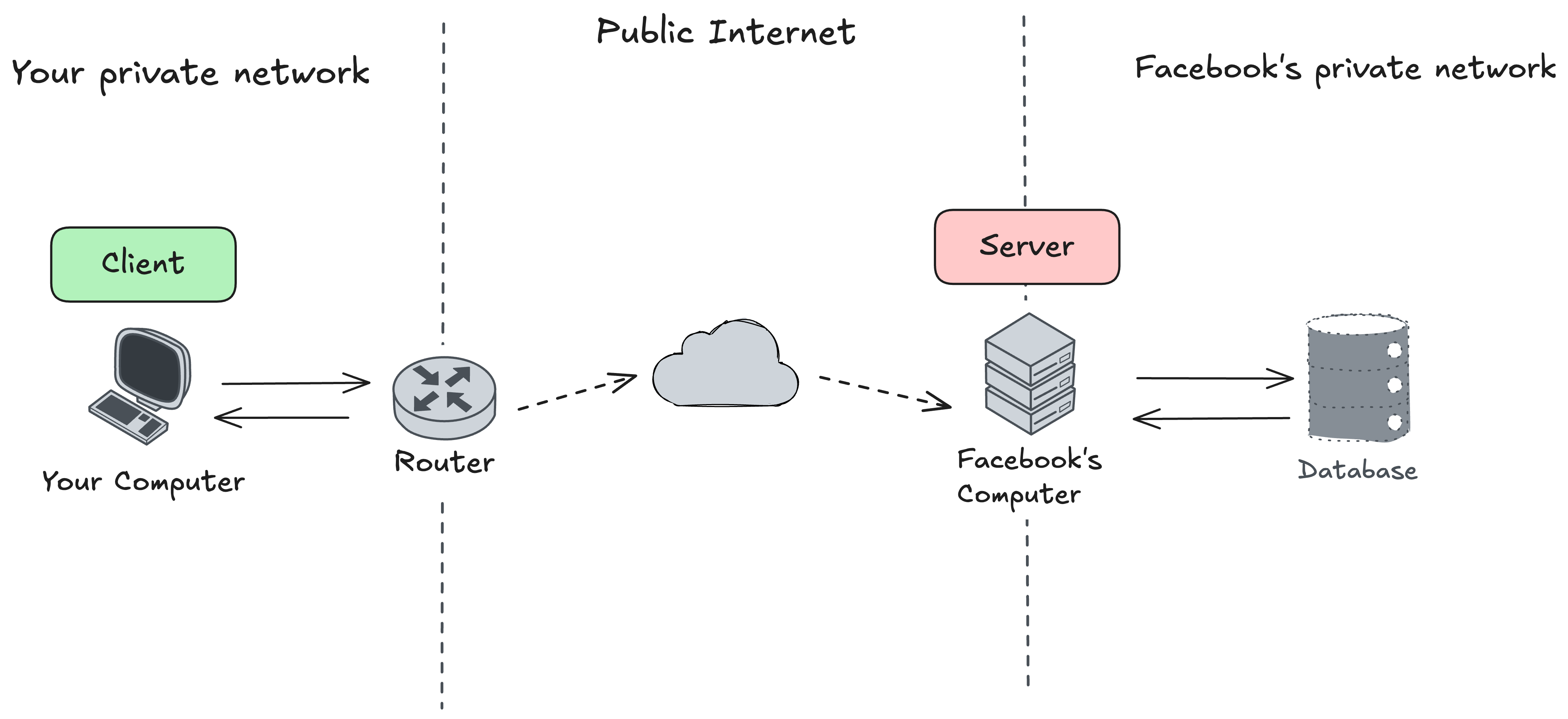 For example: Facebook’s web servers (the ones that serve your request), might request data from a database to send it back to you. In that interaction, the database is the server (a “DB server”), and the Facebook web server is acting as a client.