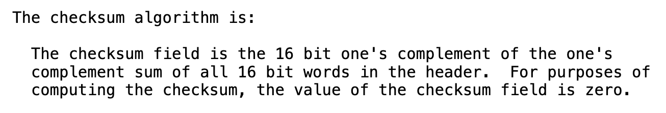 Since some header fields change at every hop (e.g., time to live), the checksum is recomputed and verified by each router that processes the datagram.