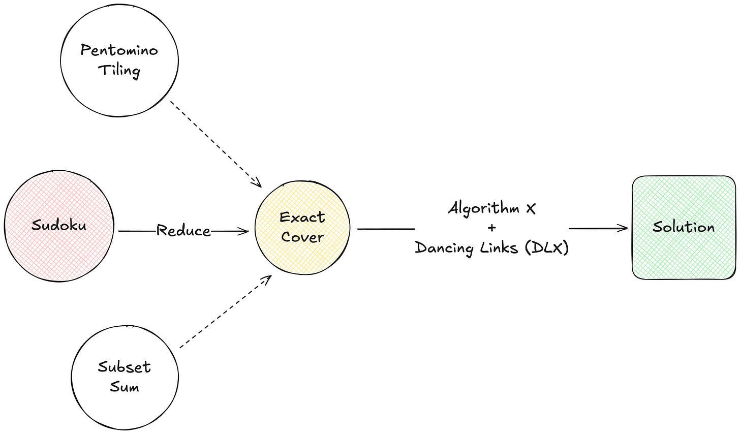 Donald Knuth came up with a nice and optimised approach for solving a classic NP-complete problem called the Exact Cover Problem. He called this backtracking approach, for lack of a better name, Algorithm X. And later he paired it with a smart data-structure called Dancing Links (DLX) to make it blazing fast in practice.