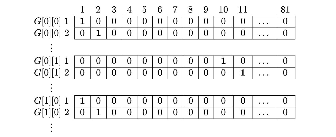 For the following sections, let’s denote our Sudoku grid as G (0-indexed) and the binary matrix we’re constructing as M.